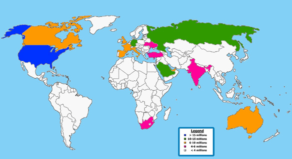 حدود یک بر سه مهاجران بین المللی فقط از ده کشور جهان می آیند.