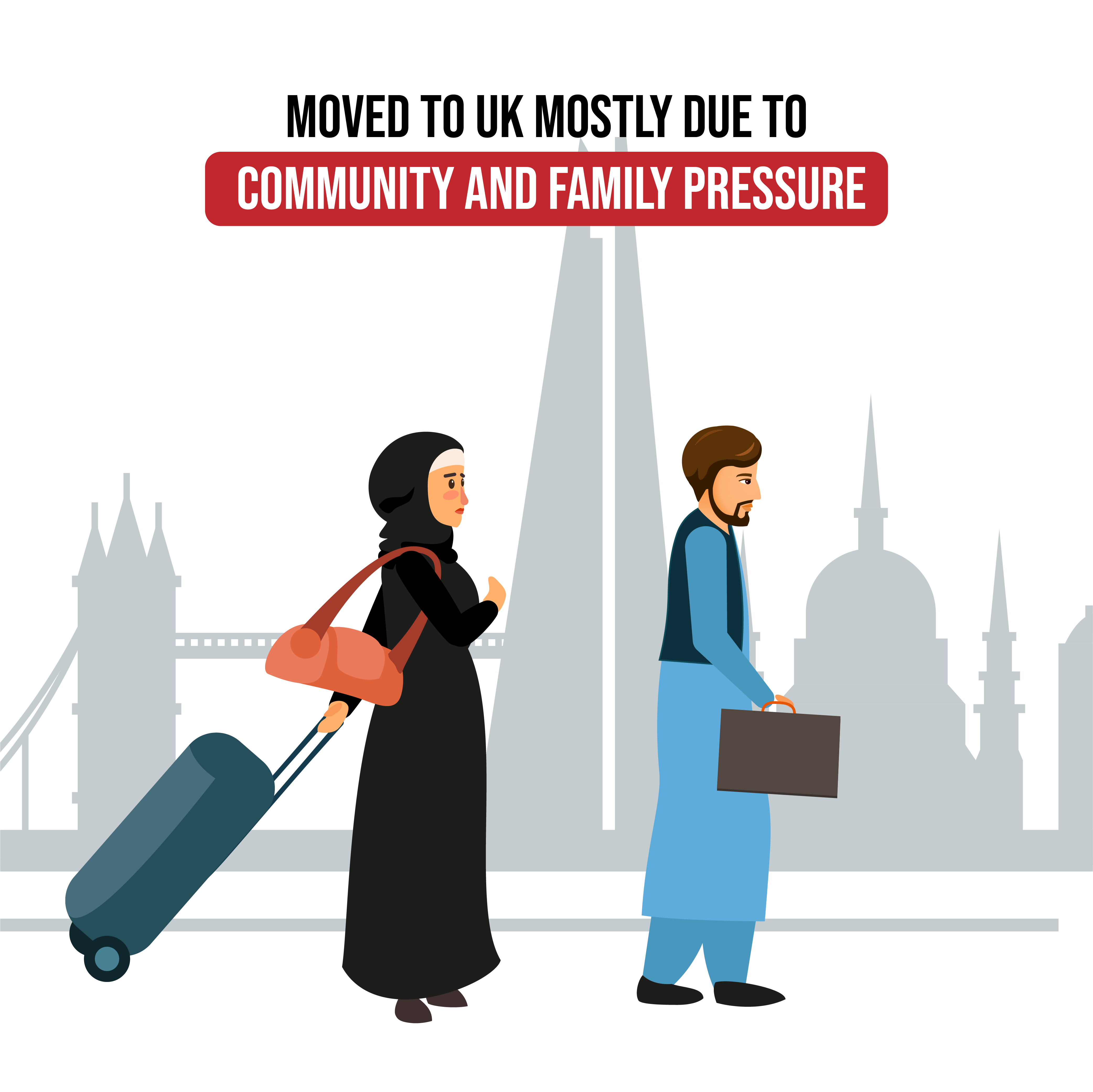 در حقیقت، من و همسرم (هر دو شاغل) بیشتر به دلیل فشارهای جامعه و خانواده به بریتانیا مهاجرت نمودیم. ما از سال 2015 گزینه هایی برای رفتن به بریتانیا داشتیم و چندین بار برای بخاطر سفر کاری به بریتانیا هم من و هم همسرم سفر نمودیم اما برگشتیم زیرا هر دوی ما دوست نداشتیم در آنجا زندگی کنیم. بلاخره به دلیل فشار جامعه، ما در سال 2019 به انگلیس مهاجر شدیم.